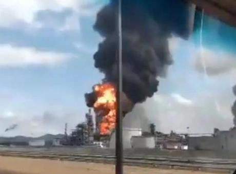 Patlamanın öğleden sonra gerçekleştiği ve etkilenen alanın, tesisin damıtma kulelerinden birinin yakınında yoğun alevler ve kalın bir duman bulutu oluşturduğu bildirildi.